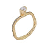 The Diamond Rowena Ring features a striking central antique diamond framed with grey pavé diamonds, delicately set on each shoulder. Crafted from 14k gold, the band’s organic texture enhances the brilliance of the diamonds, creating a captivating fusion of timeless elegance and modern artistry.