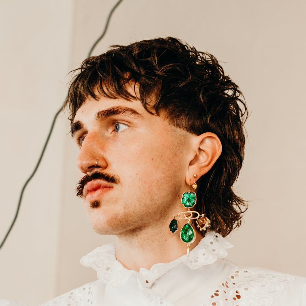 The Detachable Drop Earrings feature a mixture of citrine and vintage glass, set in 18k gold plated silver, with detachable drops in colour co-ordinated tones.