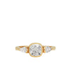 Elegant yet enduring, this ring pairs the romance of a cushion-cut diamond with the strength of a rub-over setting. The central diamond is framed by two pear-cut side stones, their symmetry creating a refined and softly radiant composition. Crafted in recycled 18k yellow gold, this design blends modern simplicity with timeless appeal - a piece made to be worn and cherished for a lifetime.