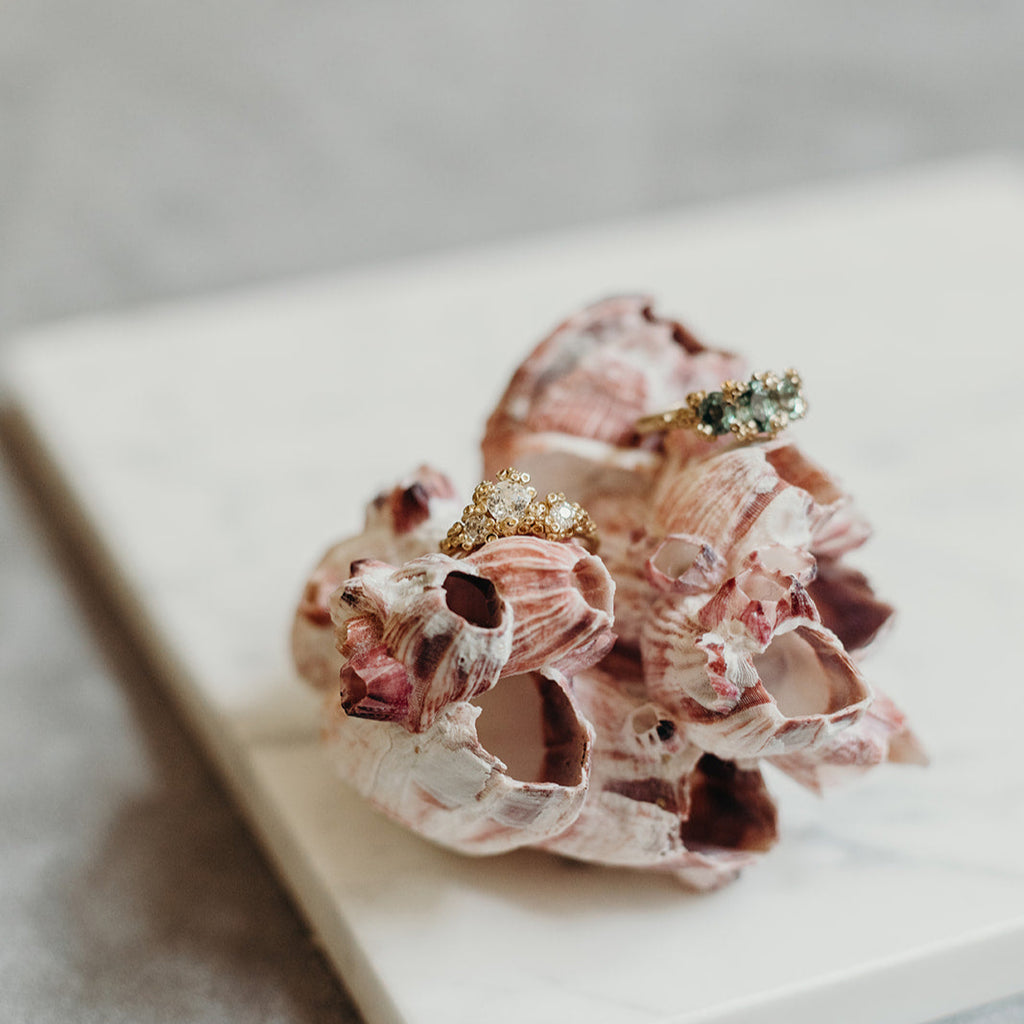 This Antique diamond ring is a dreamy one of kind mermaids treasure. Encrusted with antique old-cut diamonds, this ring is a take on a classic yet organic alternative engagement ring.