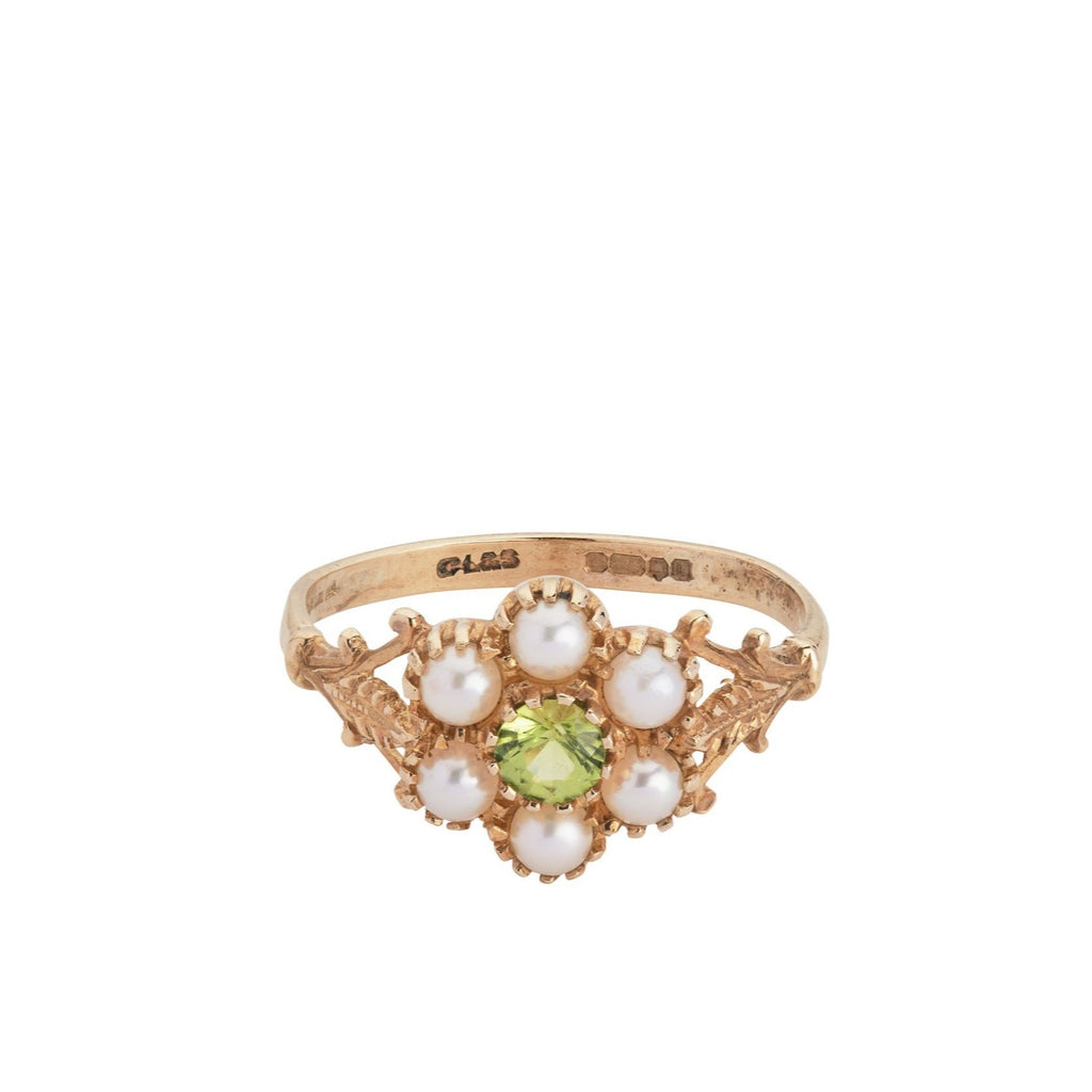 Vintage 9ct Peridot and Pearl Ring