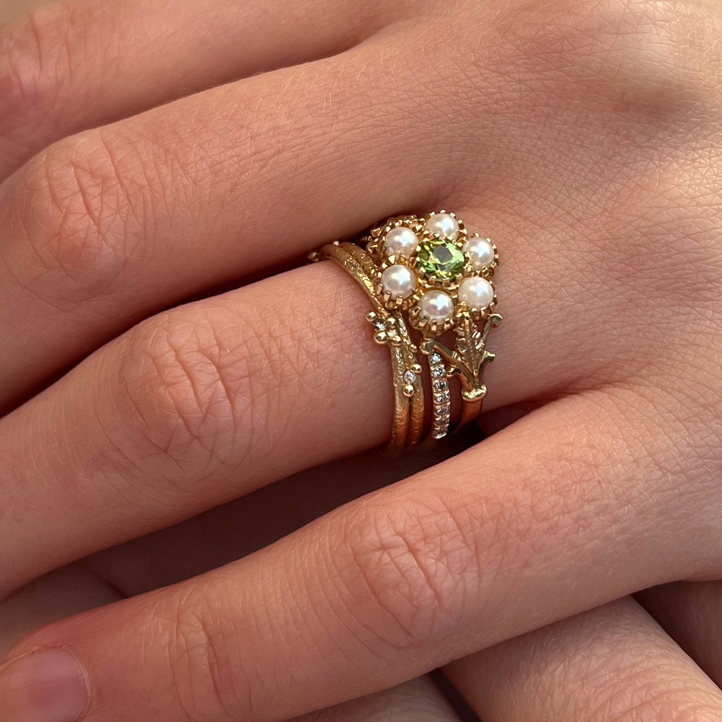 Gemstones: Peridot and split pearls