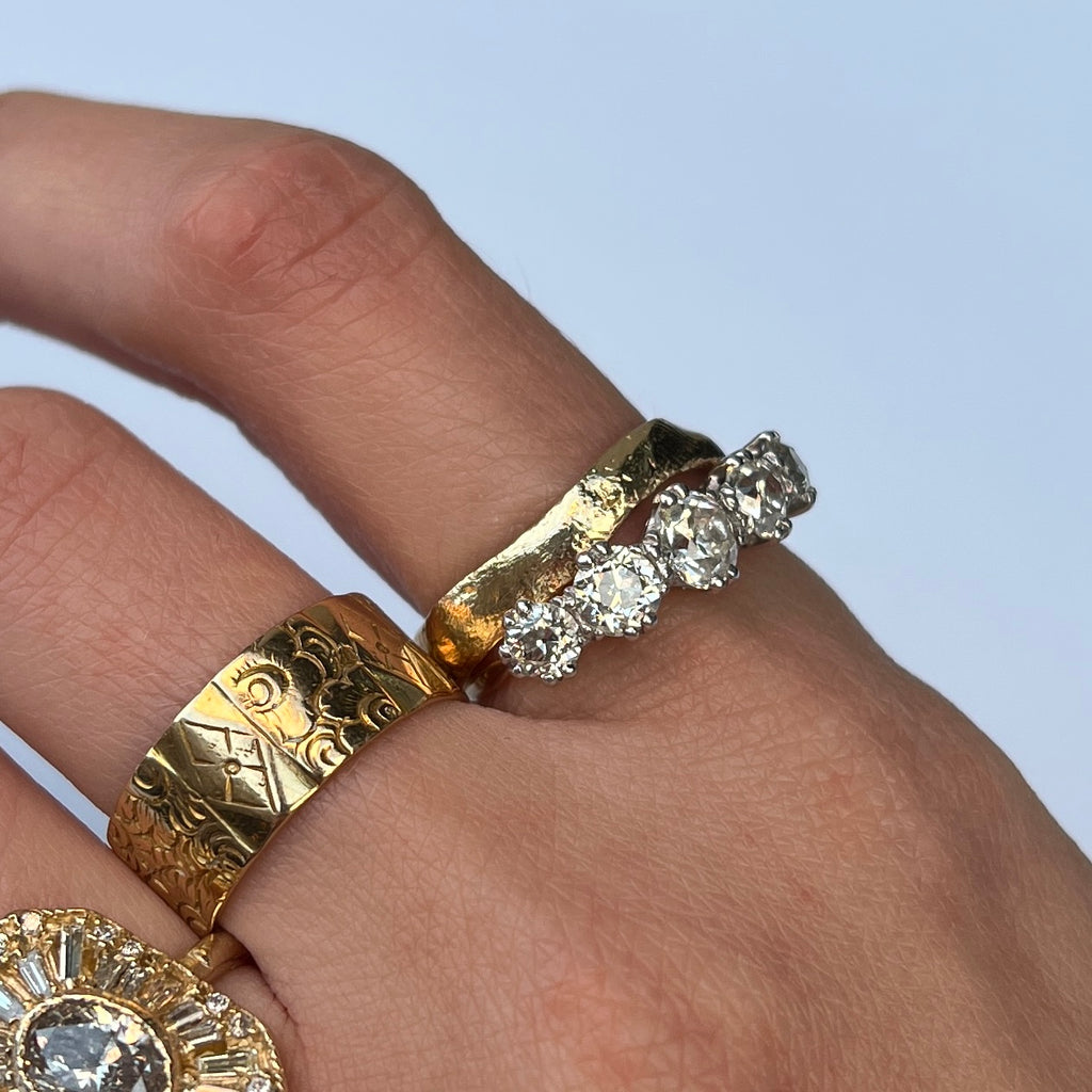 This dazzling ring styles beautifully with other antique or contemporary stacking bands, and would also make a stunning engagement ring!