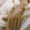 Ellis Mhairi Cameron takes inspiration from the jewellery hoards which have been found across Scotland; excavations which transcend the centuries and encompass the heritage of many different lands. Created by hand in her London studio, Ellis uses traditional techniques and hand skills to give her pieces their signature rugged aesthetic.