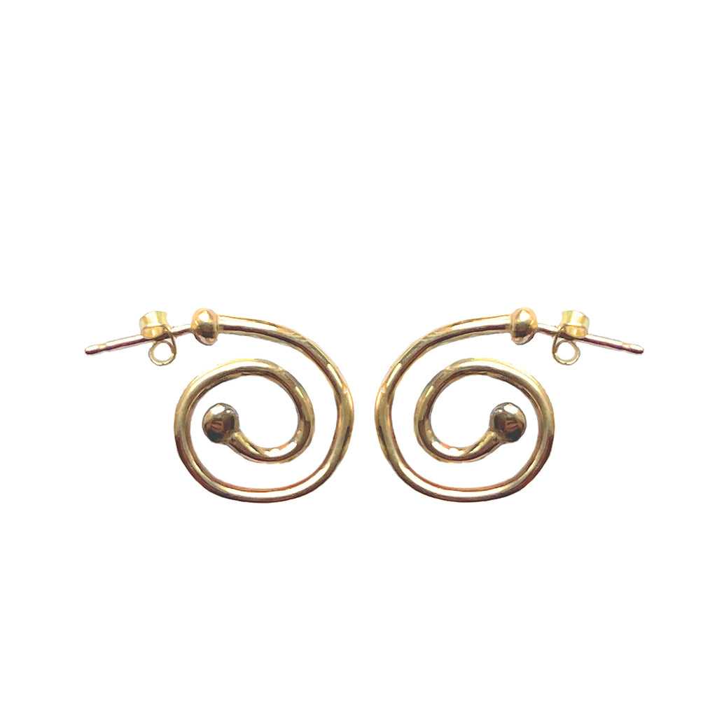 These small spiral earrings are crafted from recycled 9k yellow gold and finished with a high polish. The coiled design creates a sense of movement and fluidity, giving a refined sculptural feel