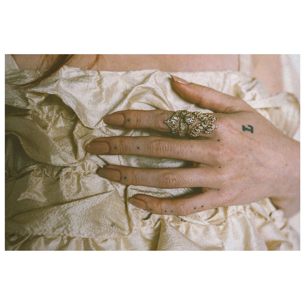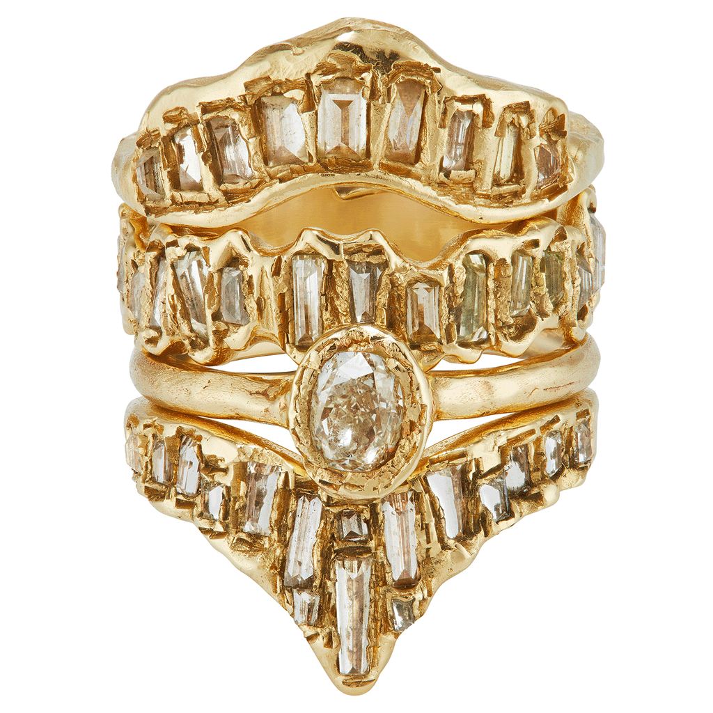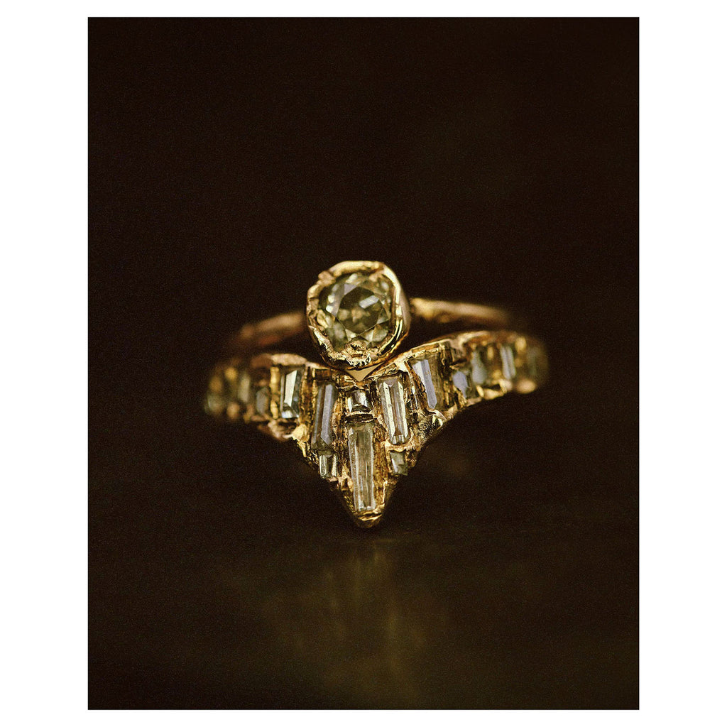 The X White Baguette Diamond Scatter Point V Shape Ring is inspired by the medieval jewellery hoards which have been found across Scotland.