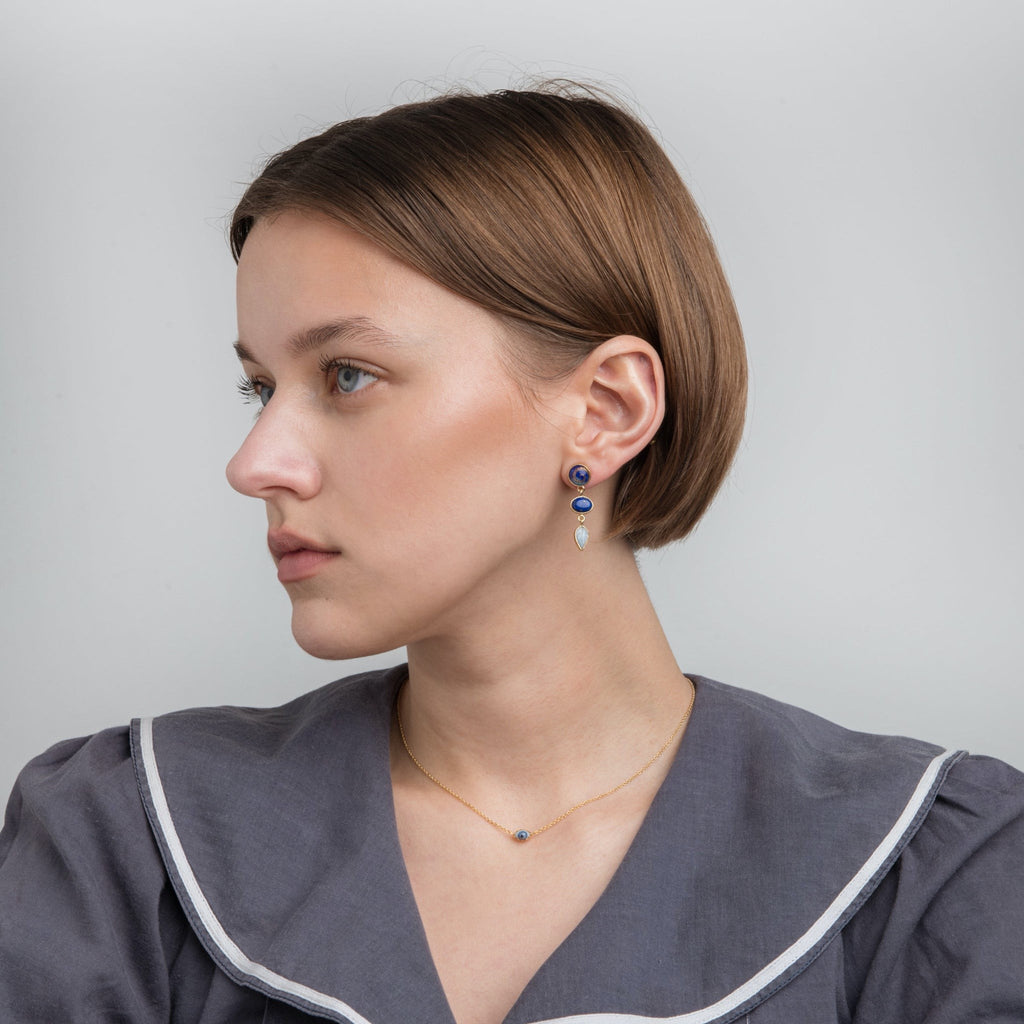 Material: 18k fairtrade gold plating on silver, glass, lapis, opal, shell and vintage glass cabochon