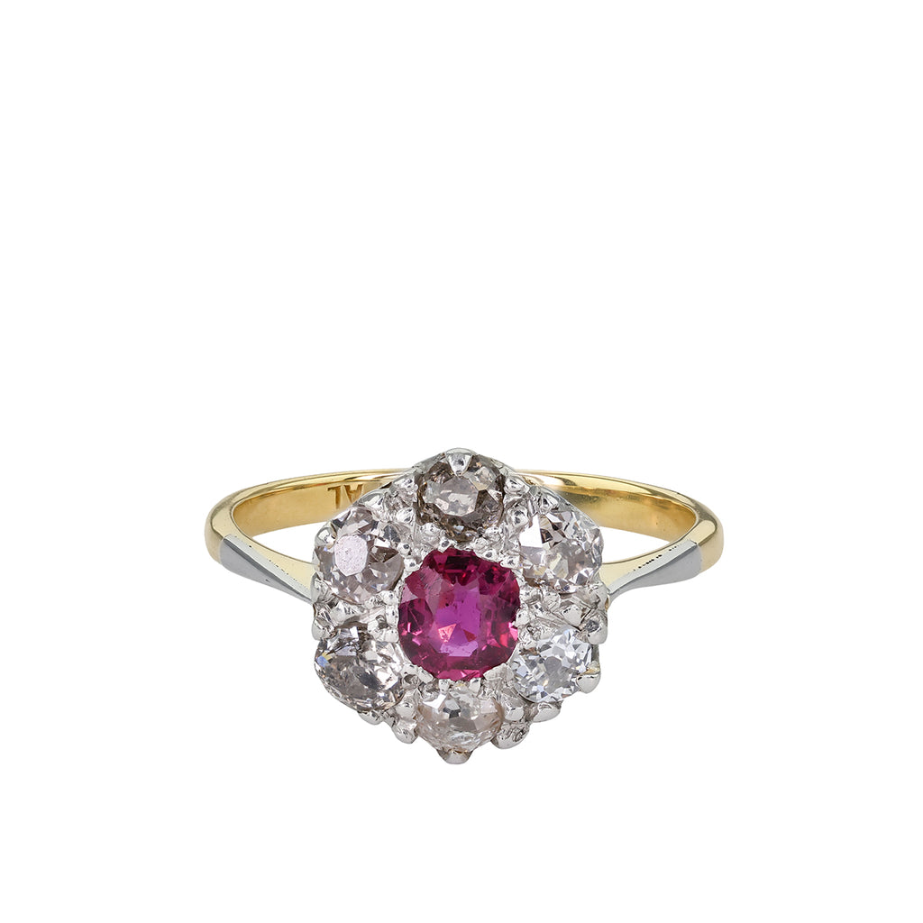 Stone details: x6 old round cut diamonds, x1 cushion cut ruby