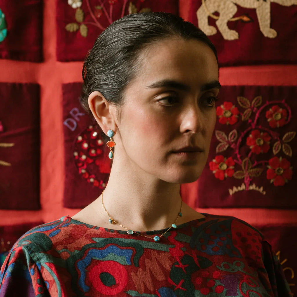Material: 18k fairtrade gold plated recycled silver, glass, turquoise, pearl