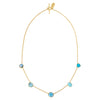 The Five Mini Charm Necklace is crafted in 18k gold-plated silver with blue toned charms arranged along a fine chain and finished with a toggle clasp.