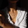 The pear shaped diamonds in this five stone diamond necklace are enhanced by Natalie’s signature flower style bezel setting, which resembles ornate 18ct gold scalloped petals. The back of this necklace is just as beautiful as the front, featuring five golden flowers finished with a gentle frosted texture to create a versatile piece that can be worn two ways.
