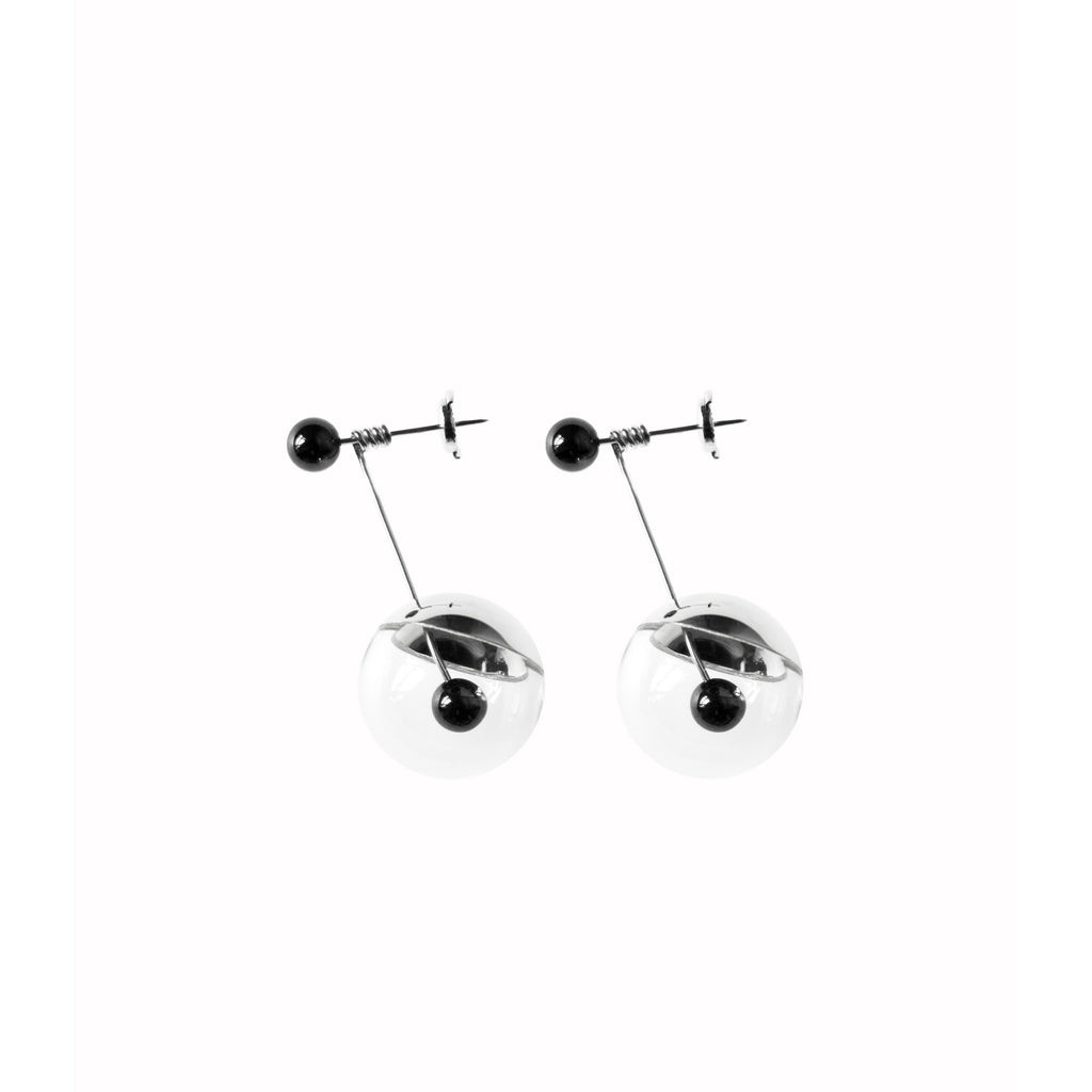Part of Wenjin Jiang’s NIBIRU series, these stud earrings explore balance and movement through articulated silver forms, hematite and borosilicate glass. Drawing on influences from sound art and kinetic sculpture, the earrings introduce subtle motion close to the ear, with suspended elements that shift gently in response to the wearer’s movement. Named after the constellation Draco, the design reflects the collection’s ongoing interest in connection, distance, and an interconnected universe.