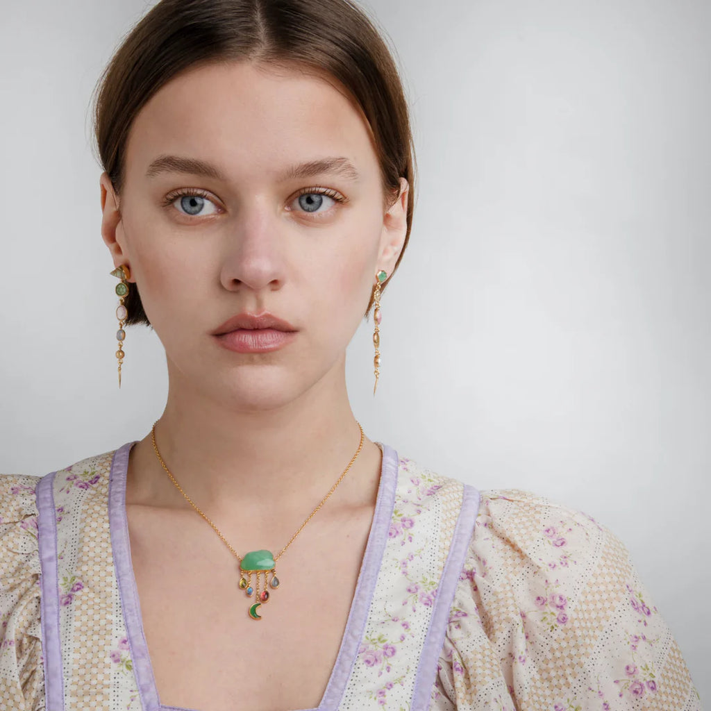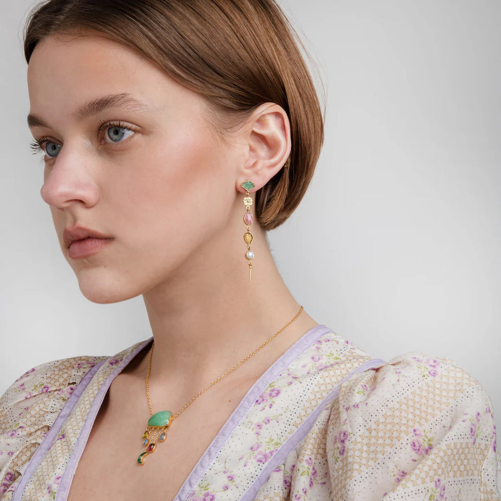 From Grainne's Victorian drop collection, these graceful and elegant earrings include a variety of treasures, including opal—which symbolises optimism, enthusiasm and creativity.
