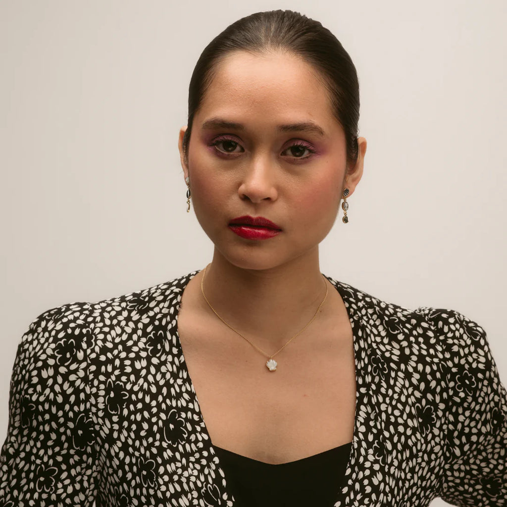 From Grainne’s moving drop earring collection, these monochrome earrings each showcase three unique vintage charms. Set in Fairtrade 18k gold-plated silver and featuring mother of pearl and onyx, they reflect a blend of natural beauty and thoughtful design.