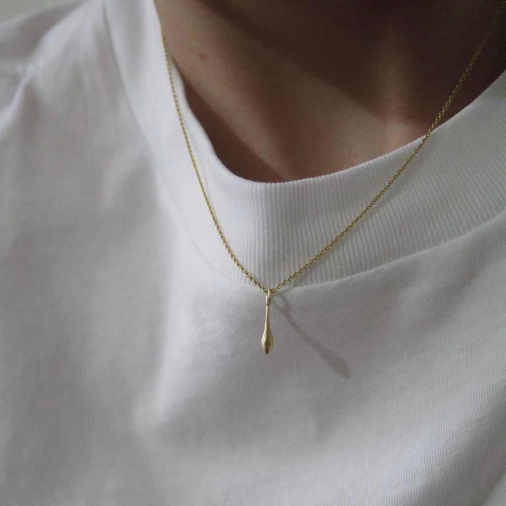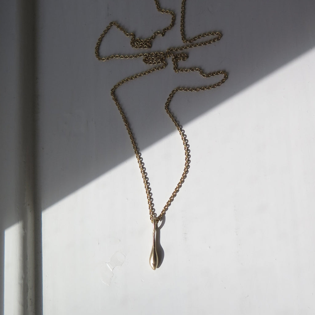 A sculpted pendant with a mesmerising texture of molten gold - crafted in 14k recycled yellow gold.