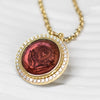 Visible here beneath the stone, and through a window of rich pink colour, this heart held by a pair of delicate hands has been hand carved by an award-winning engraver, and is truly one of a kind.