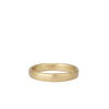A contemporary men's wedding band with rounded edge in a lightly textured matte finish. A unique mens wedding band for those looking for a simple and comfortable design. The 14ct yellow gold suits all skin tones and is a popular option for those seeking an understated tone of gold. Ruth Tomlinson's bands are all individually handmade in her London studio - their organic shape and slightly undulating profile are evidence of this.