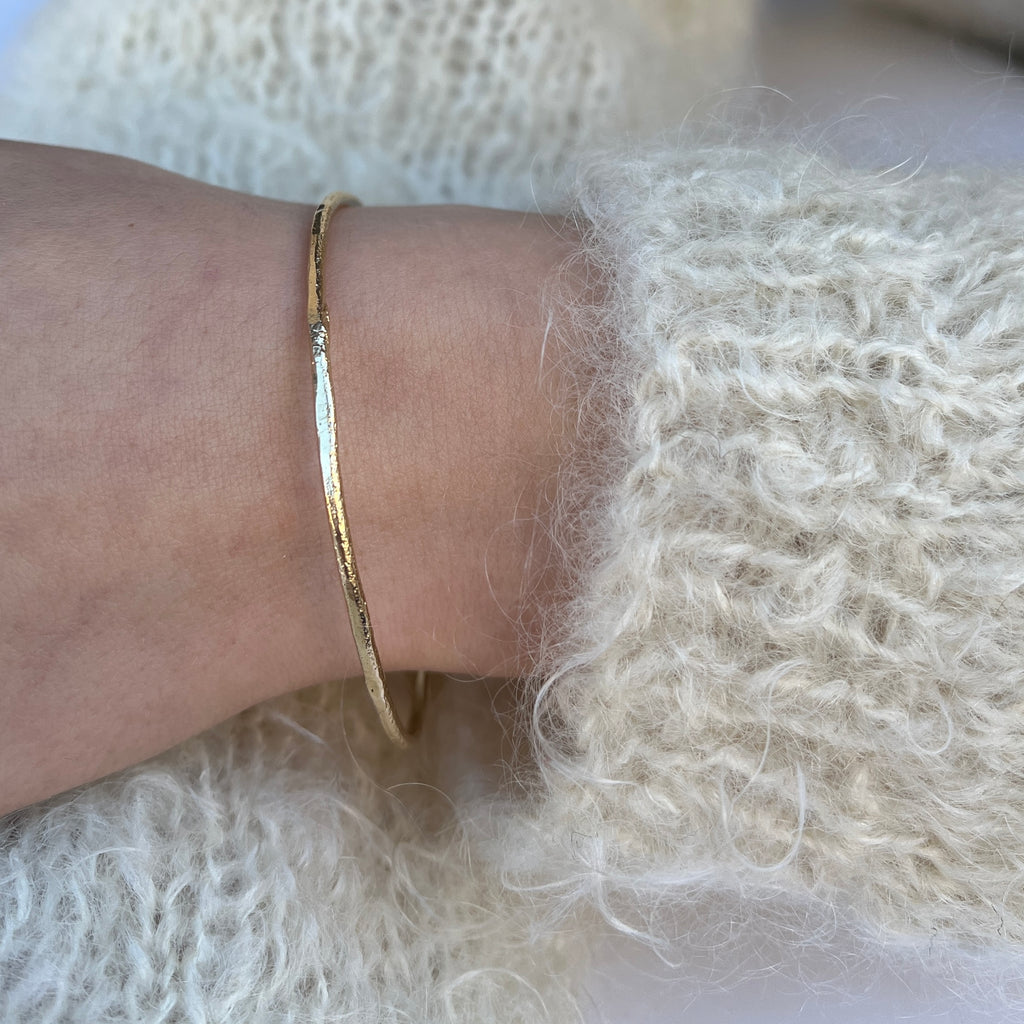 Minimalist and elegant, the subtle texture of the bangle catches in the light. Wear solo, or layer multiple bangles up for a statement look.