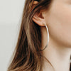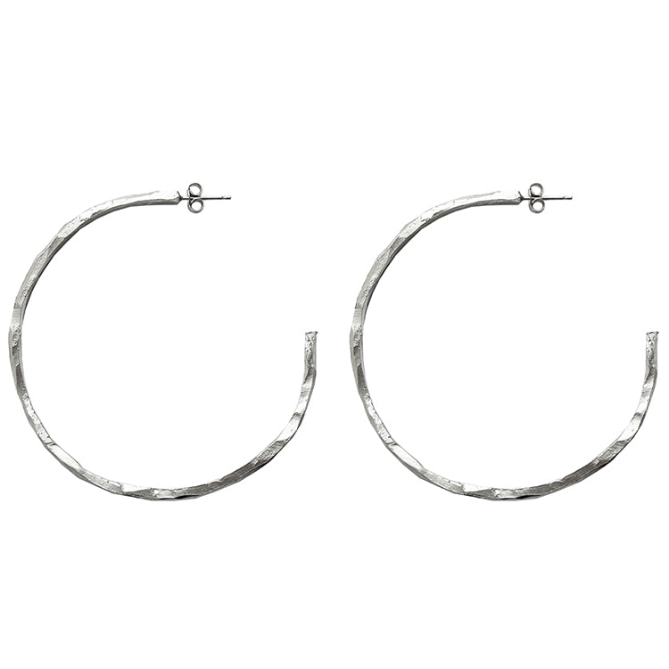 Crafted from recycled sterling silver, this pair of large, skinny hoops showcases a sleek and modern design. The minimalist style highlights their versatility, making them a perfect accessory for any outfit. Lightweight and comfortable, they are ideal for everyday wear or for adding a touch of elegance to your look.