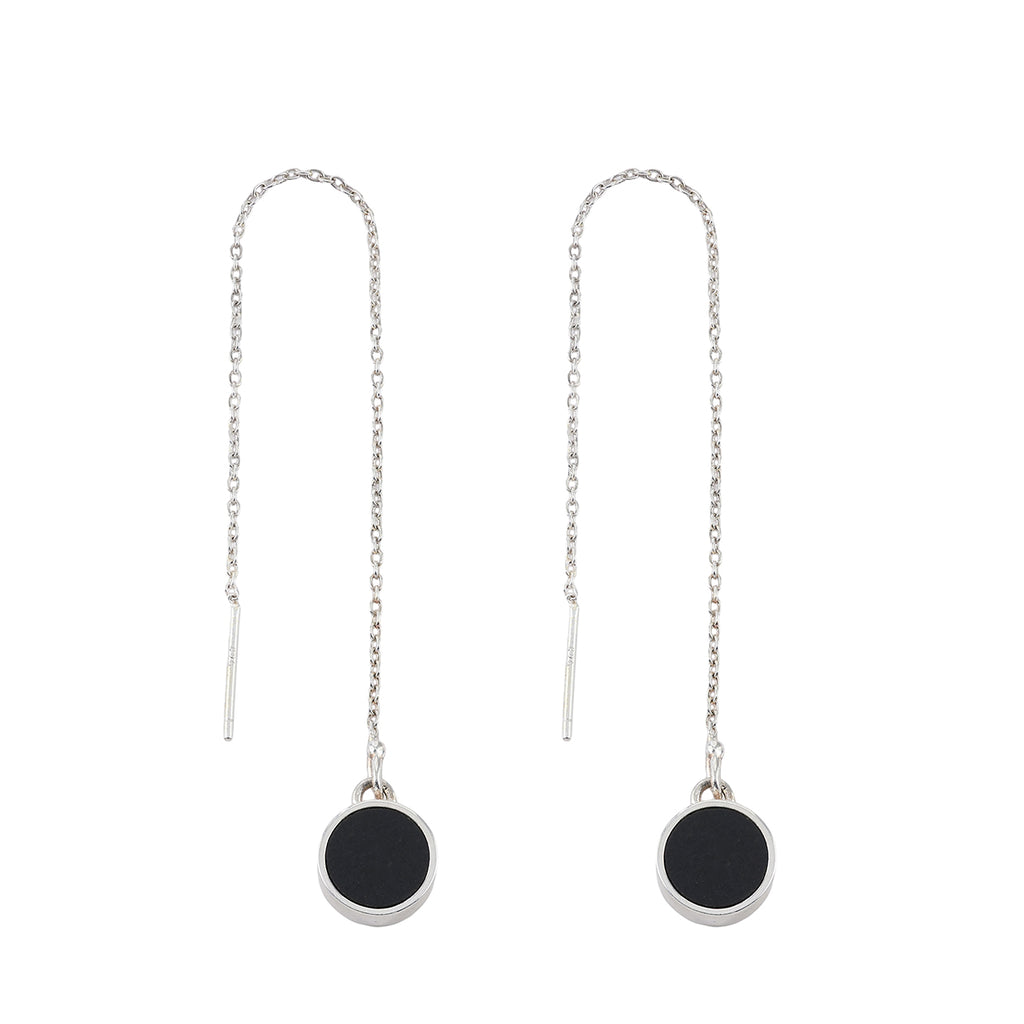 The Basalt Pull Through Chain Earrings are crafted from Faroese Basalt Rock and set in solid sterling silver. Turið is an architect from the Faroe Islands, an influence you see clearly in her work through her use of graphic shapes and bold lines. The Faroe Islands lie on the Eurasian plate between Scotland, Norway and Iceland. The islands are of volcanic origin and are made up of three layers of basalt, with the top and bottom layers resembling each other. The age of this rock is between 54 and 58 million years, with the oldest material at the bottom.