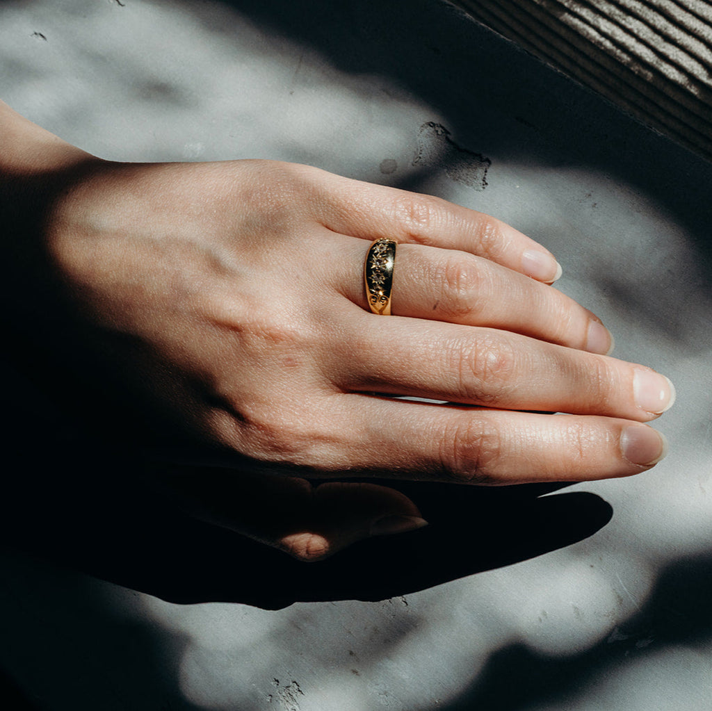 We would wear alone as a statement everyday piece, or even as an alternative engagement ring filled with celestial mystique.