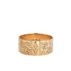 1873 Victorian engraved wide band ring. This buttery yellow 18ct gold band has a distinctive hand engraved pattern around the entire outer surface.