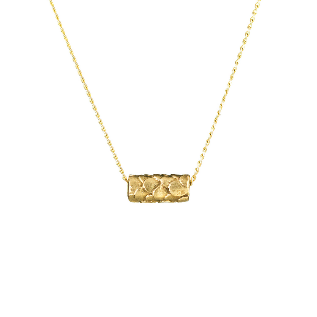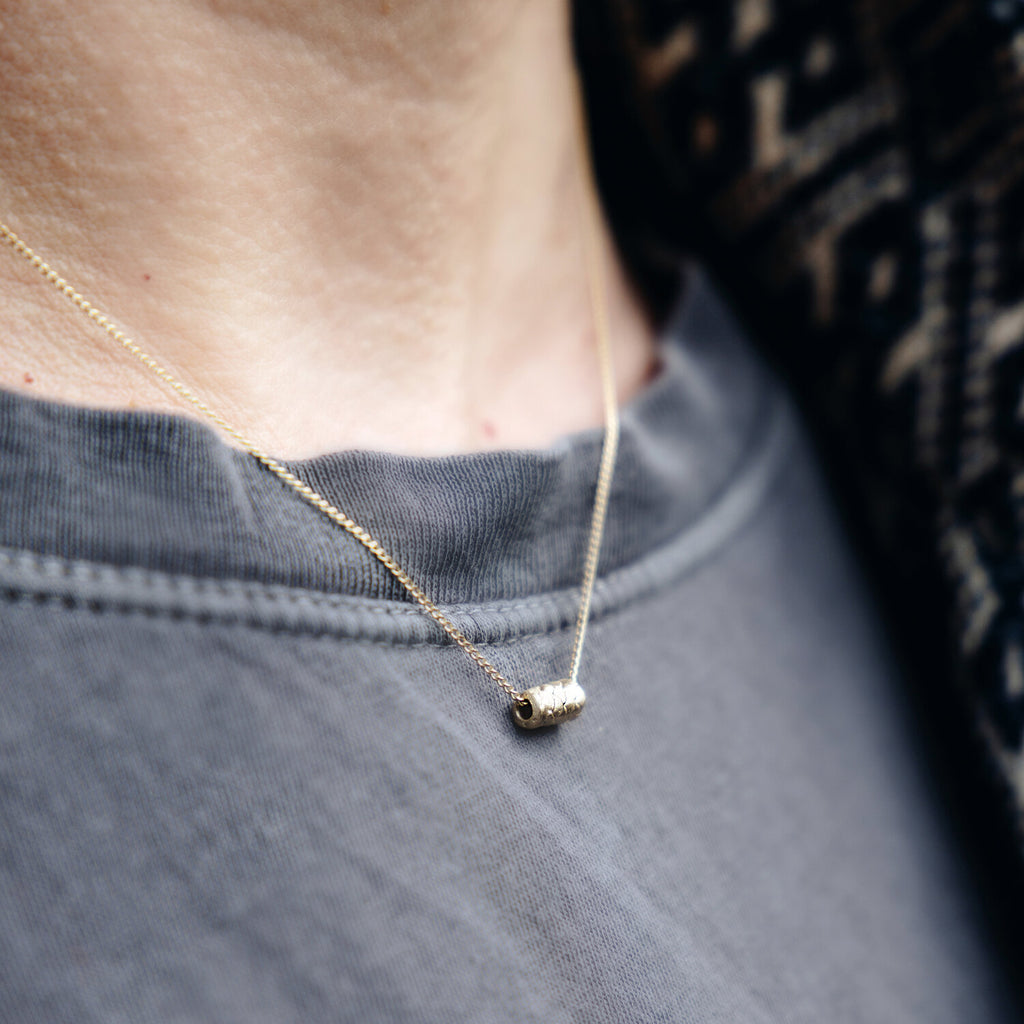 The Contemplation Bead Necklace is designed to be rolled between finger and thumb while you meditate on thoughts. This modest design hangs from on a slim diamond cut curb chain.