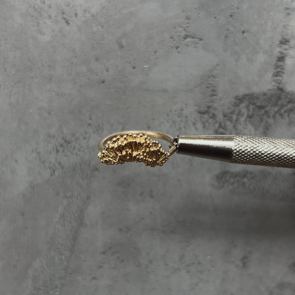This gorgeous golden ring is covered in intricate coral detail, it looks lovely on its own but really creates an impact when layered with other rings.