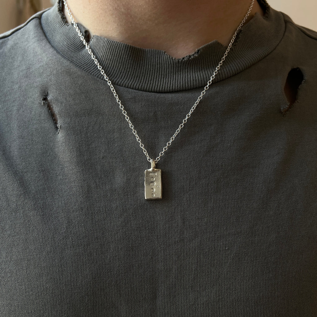 Hand-carved slab of rugged recycled sterling silver with traditional British hallmarking. Perfect worn alone or layered with other styles.
