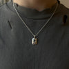 The Sapphire Facet Necklace features three uncut sapphires hand set in a thick and textured faceted slab of silver. The rugged setting style contrasts against the striking colourful stones, creating a standout piece.