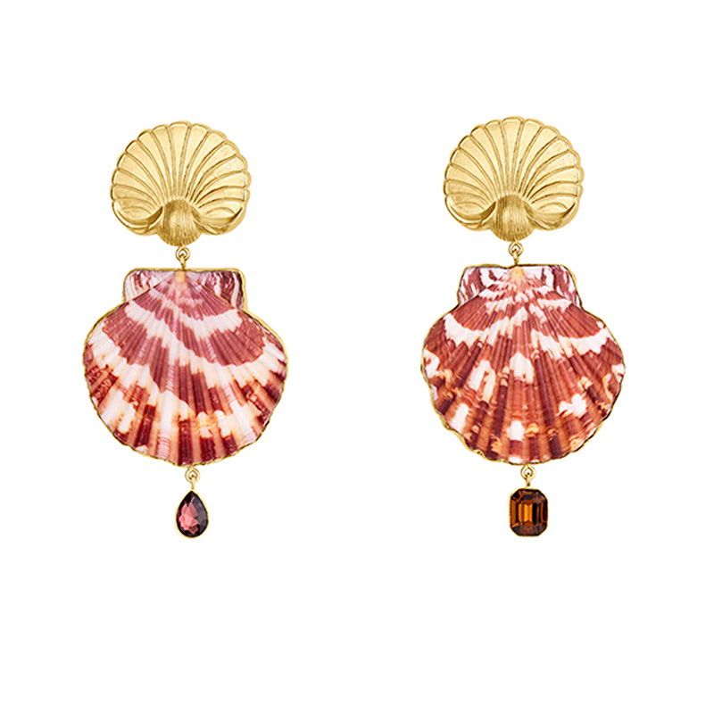 Grainne Morton’s statement Scallop Earrings showcase a unique design that combines natural scallop shells and vintage rhinestones, all set in Fairtrade 18k gold-plated silver. The natural shell embodies a connection to the ocean, symbolising beauty and tranquility, while the vintage rhinestones add a touch of sparkle. Crafted with care, these earrings reflect a passion for unique artistry.