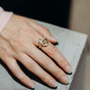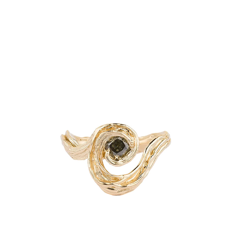 Materials: 14ct yellow gold and set with a 4x4mm green diamond