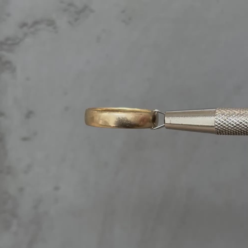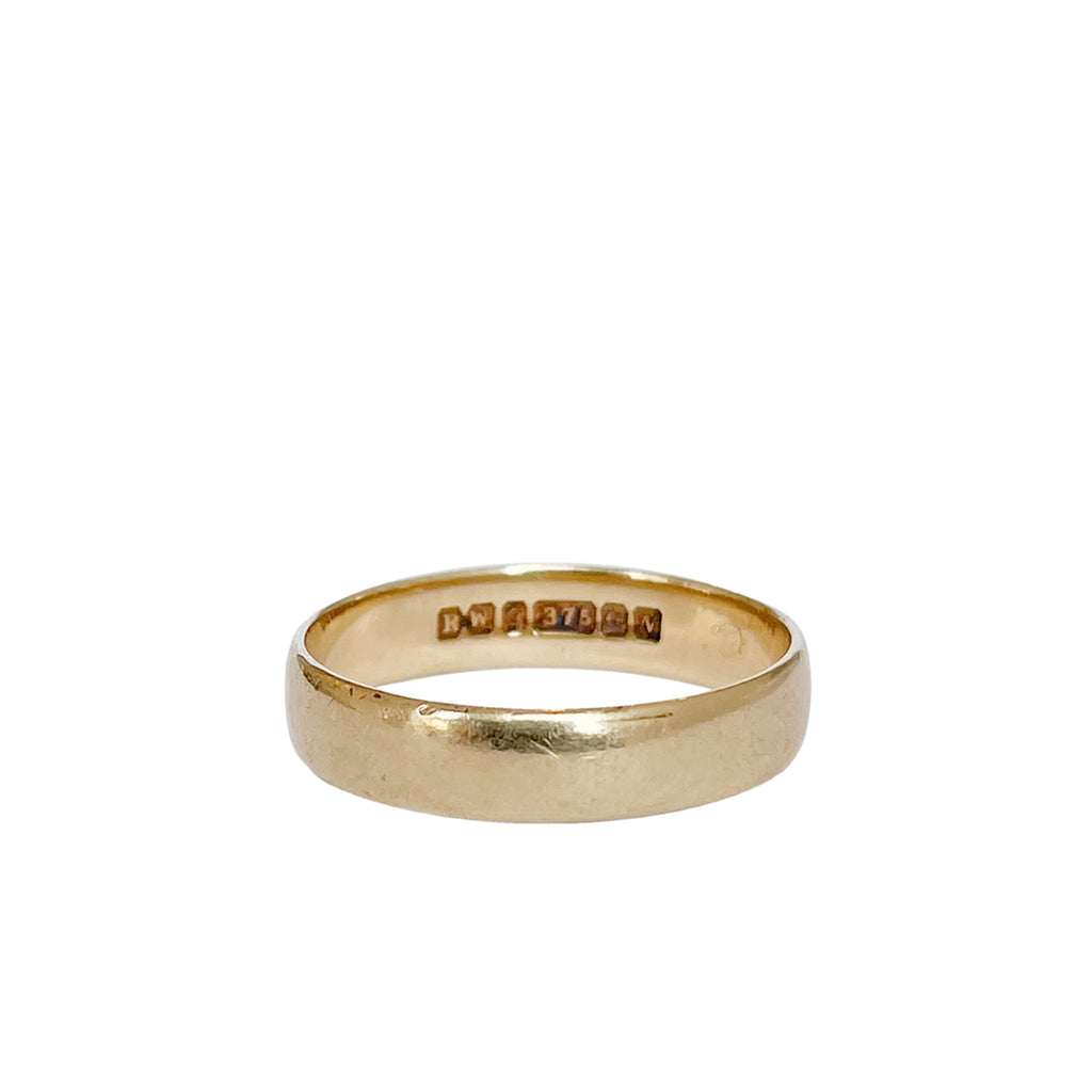 A 1962 vintage band with a modern feel. This soft yellow 9ct gold band has a gently curved outer profile. A true classic  - this is a wedding band that will never go out of style.
